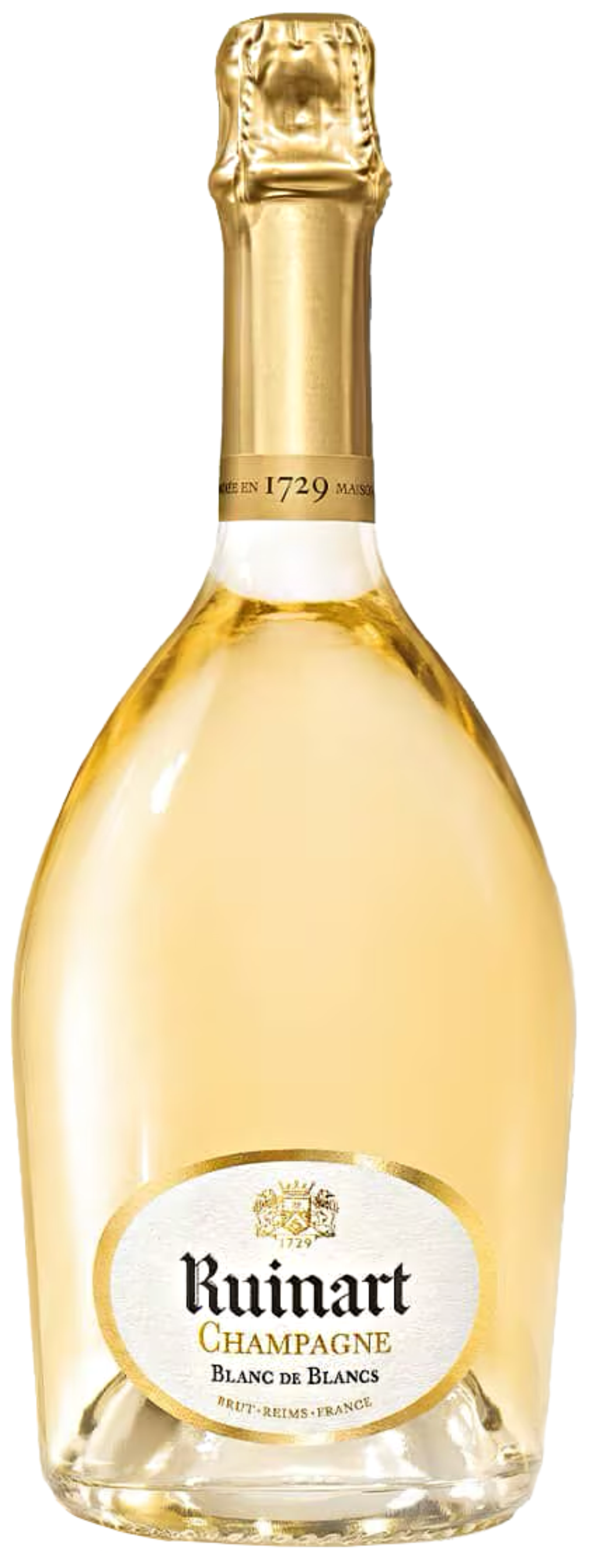 Ruinart Blanc de Blancs has fine, light bubbles. Delicate Chardonnay grapes give it an instantly recognizable golden yellow colour. On the palate, it develops a fresh, supple roundedness.